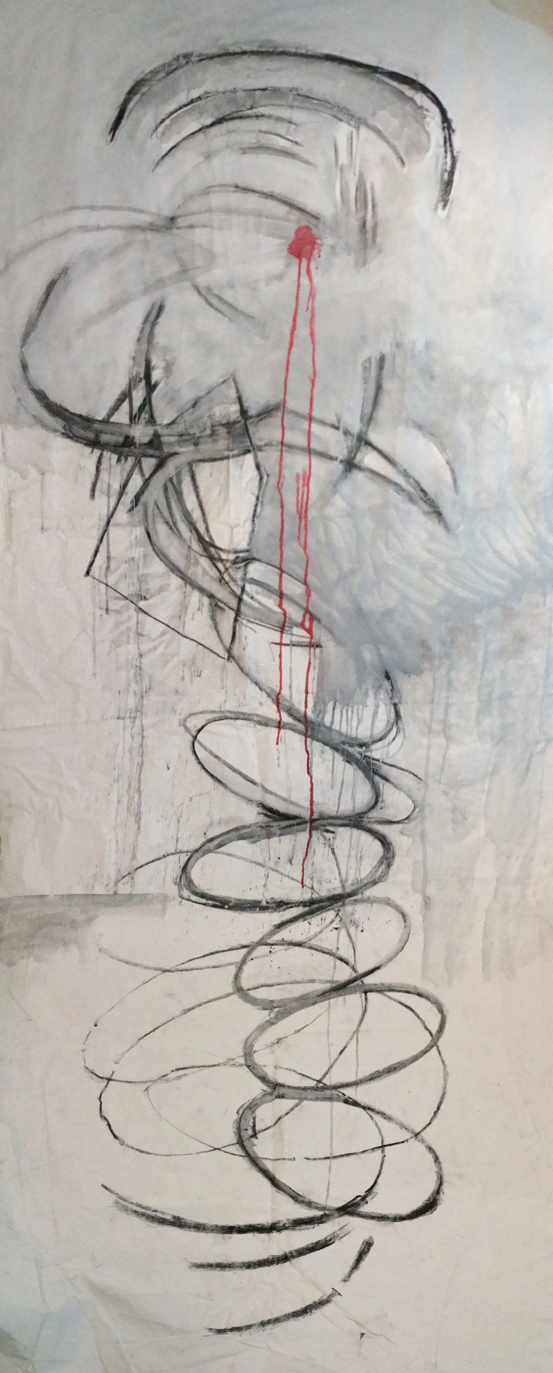 Untitled, charcoal and water on canvas. 2015. 30" by 72"